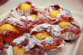 自家製カスタードクリームを巻き込みチーズを振り掛けました。