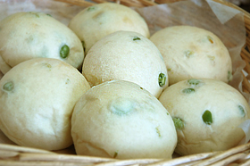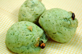 白パン生地に枝豆を練り込みずんだあん(枝豆餡)。を包み込みました。